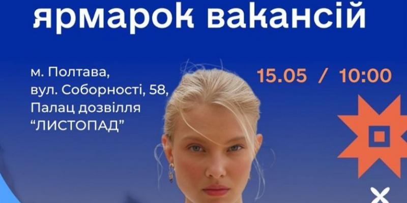 15 травня з 10.00 по 14.00 у Полтаві (вул. Соборності, 58 Палац дозвілля «Листопад») відбудеться Національний ярмарок вакансій! У цей день подібні ярмарки пройдуть одночасно у всіх регіонах країни у містах обласного та районного значення