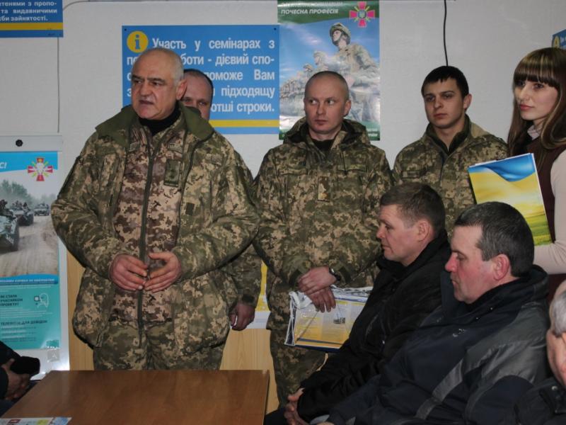 До присутніх з вітальним словом звернулась директор філії Н. Шаптала, яка розповіла про можливість проходження служби за контрактом у військовій частині А0312, яка дислокується в селі Селещина Машівського району Полтавської області та призначена для прийому і видачі озброєння військ радіаційного, хімічного, біологічного захисту військовим частинам ЗСУ.