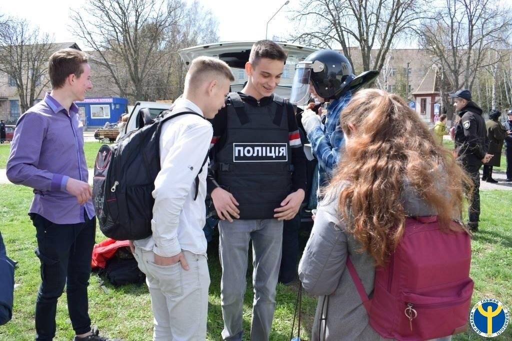На завершення представники Патрульної поліції презентували учням шкіл у дворі Будинку культури свій автомобіль. Цікаво було посидіти у машині, відчути себе поліцейським. З задоволенням міряли екіпіровку, робили селфі та спілкувалися з поліцейськими. І запитання були. Можливо, хтось побачив себе саме на такій роботі.