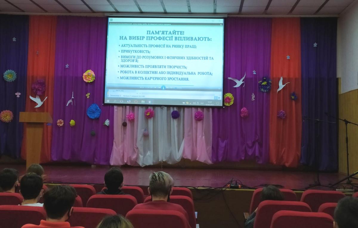 Під час заходу фахівець філії, за традицією зустрічей зі школярами, надала інформацію про стан ринку праці в Лубнах і Лубенському районі, основні правила і помилки при виборі професії, про актуальні і перспективні професії та як їх набути.
