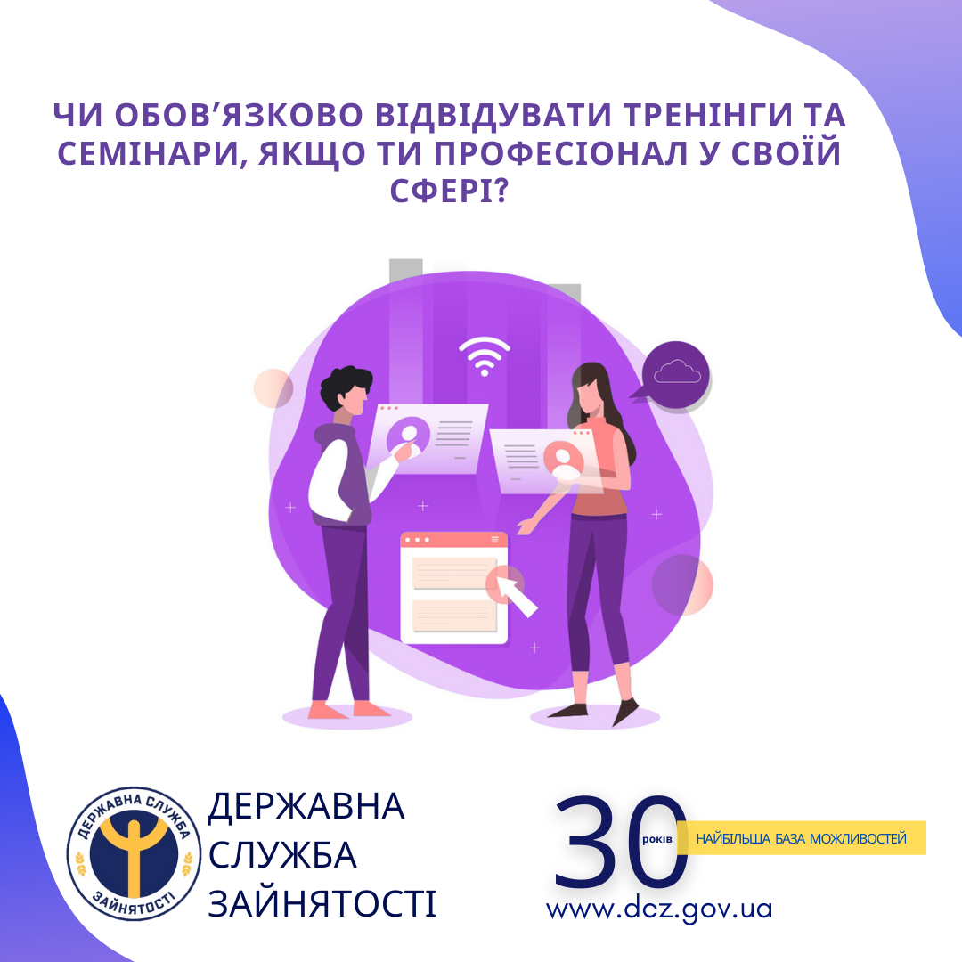 Йдеться не лише про людей, які щойно почали опанування нової професії, але й про професіоналів. Державний центр зайнятості наводить декілька змістовних аргументів, які стовідсотково розвіють сумніви щодо відвідування подібних заходів: https://bit.ly/2NskBji.