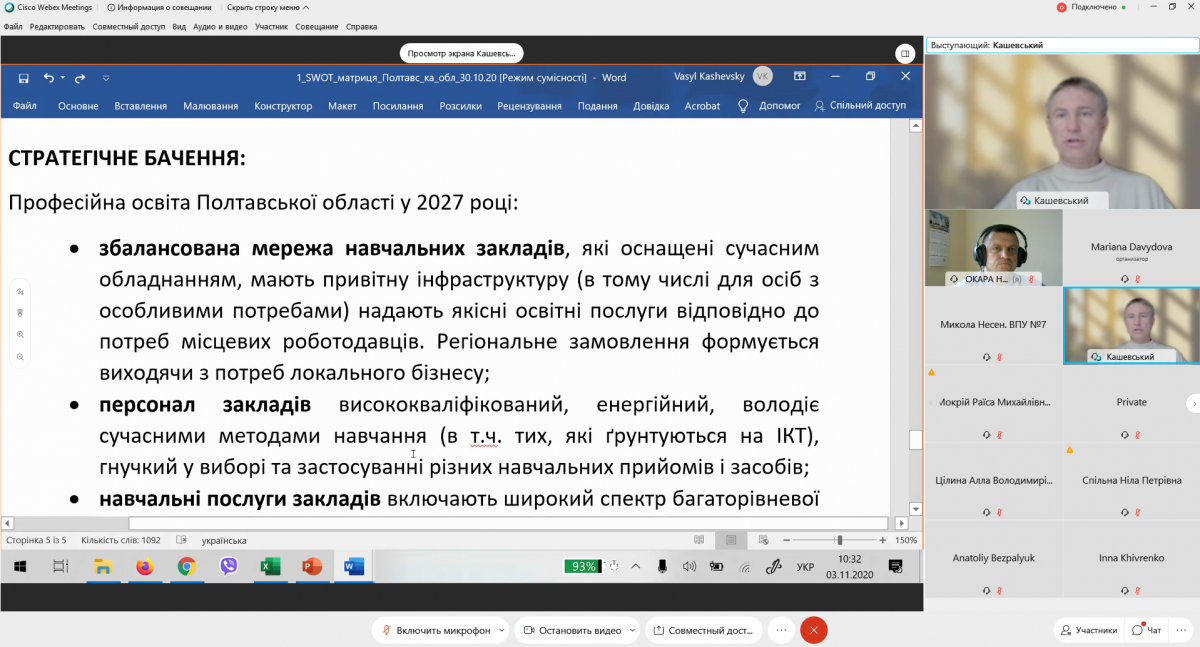 Робота на вебінарі була насиченою, плідною, цікавою, конструктивною. Учасники обговорили проект стратегічних, операційних цілей та завдань, спрямованих на підтримку професійно-технічної освіти в Полтавській області.