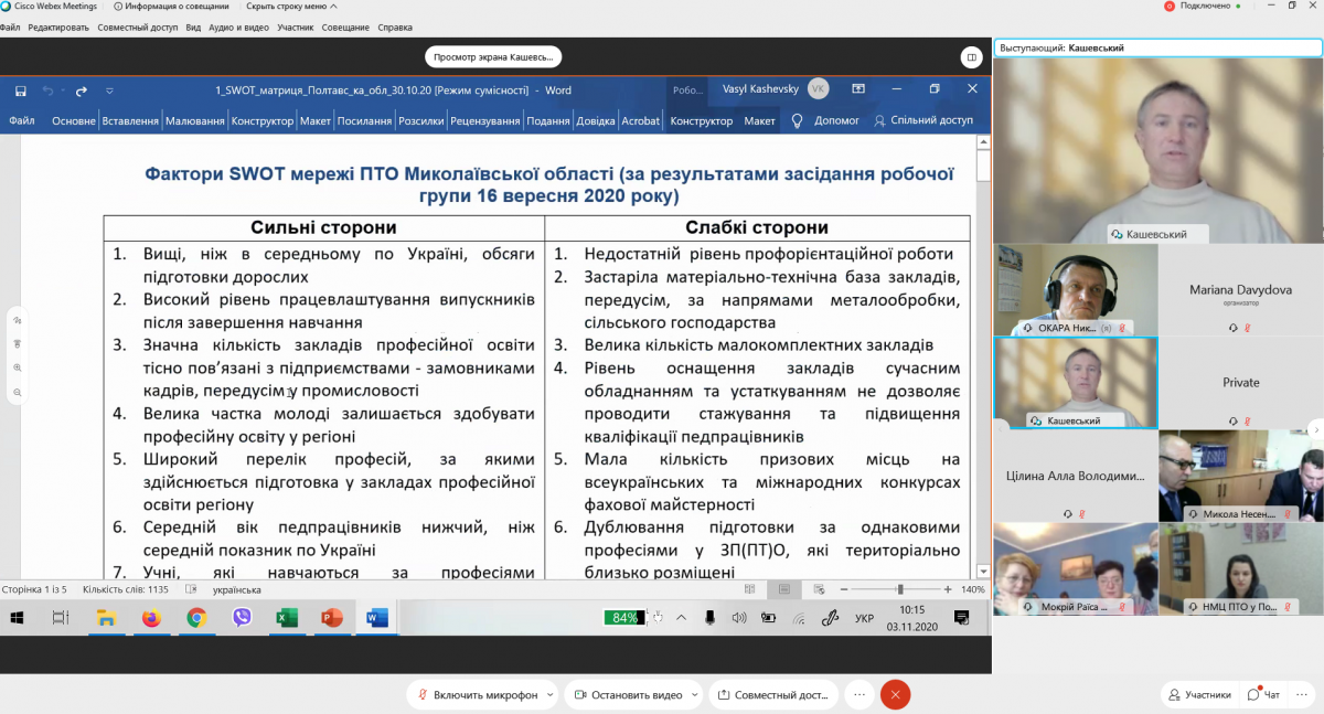 Так, 3 листопада 2020 року в он-лайн режимі пройшло засідання робочої групи зі стратегічного планування розвитку системи професійної освіти Полтавської області.