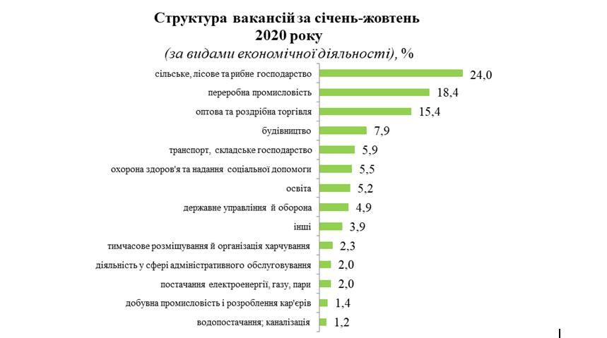 Протягом січня-жовтня 2020 року роботодавці поінформували центри зайнятості про наявність 43,7 тисячі вакансій.