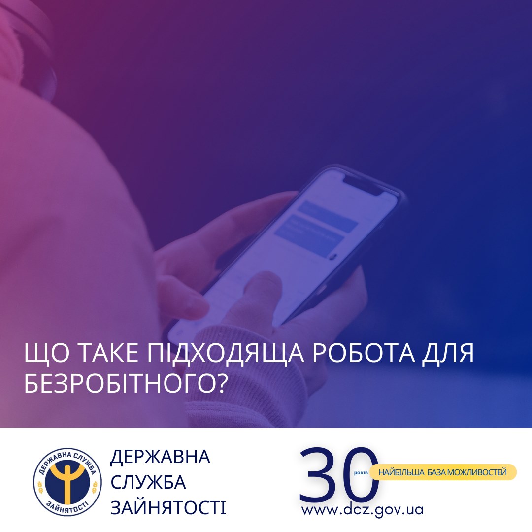 Під час пропонування підходящої роботи враховується тривалість роботи за професією (спеціальністю), кваліфікація, досвід, тривалість безробіття, а також потреба ринку праці.