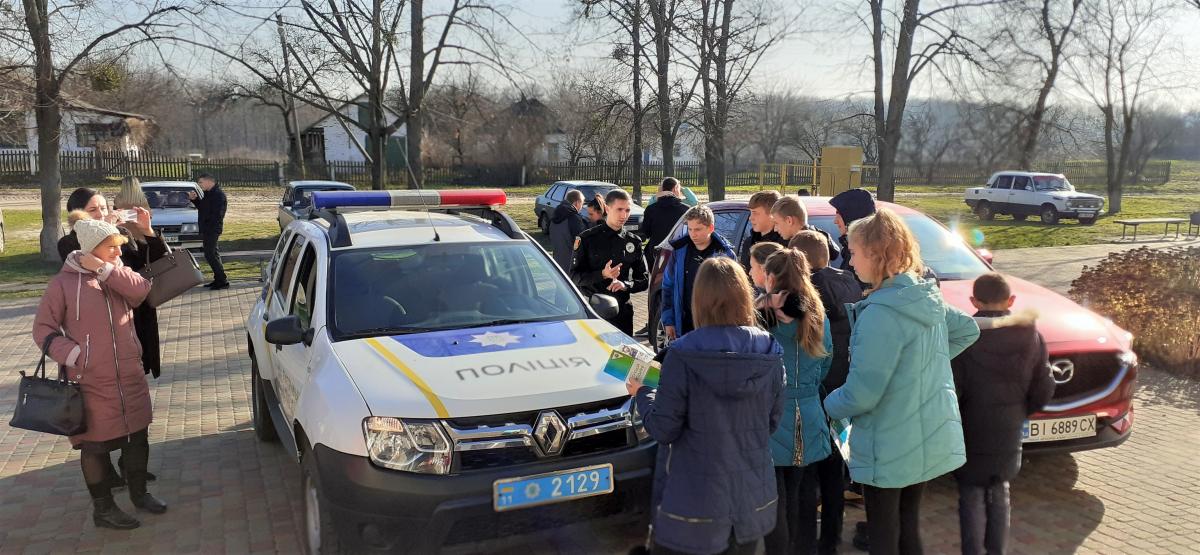 І на завершення представники Патрульної поліції презентували учнім шкіл свій службовий автомобіль. Бажаючих було багато: цікаво посидіти у машині, відчути себе поліцейським. Із задоволенням міряли екіпіровку, бронежилети, розглядали машину, робили селфі та спілкувалися з поліцейськими. І тут спілкування було вже індивідуальне. Можливо, хтось з дітей побачив себе в недалекому майбутньому на несенні таких відповідальних служб.